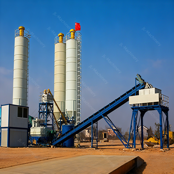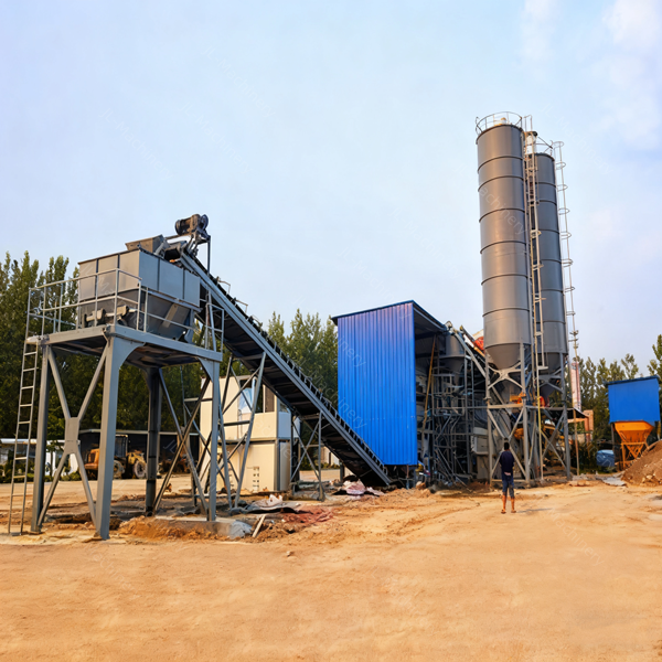 工作原理简述 其工作流程是精确计量 → 强制搅拌的工业化生产过程: 精确配料:根据预设配方,控制系统同步启动各骨料给料机、粉料计量秤和供水单元,将所有原材料按精确比例投入。 集料输送:计量好的骨料和粉料汇聚到集料皮带,被输送至搅拌机;水通过喷嘴同步喷入。 强力搅拌:在双卧轴搅拌机内,所有物料被高速旋转的叶片剧烈剪切、抛洒、对流,在短时间内(通常20-40秒)达到高度均匀。 成品储存与发放:均匀的混合料通过成品皮带机送入大容量成品仓暂存,等待自卸车运输至工地。